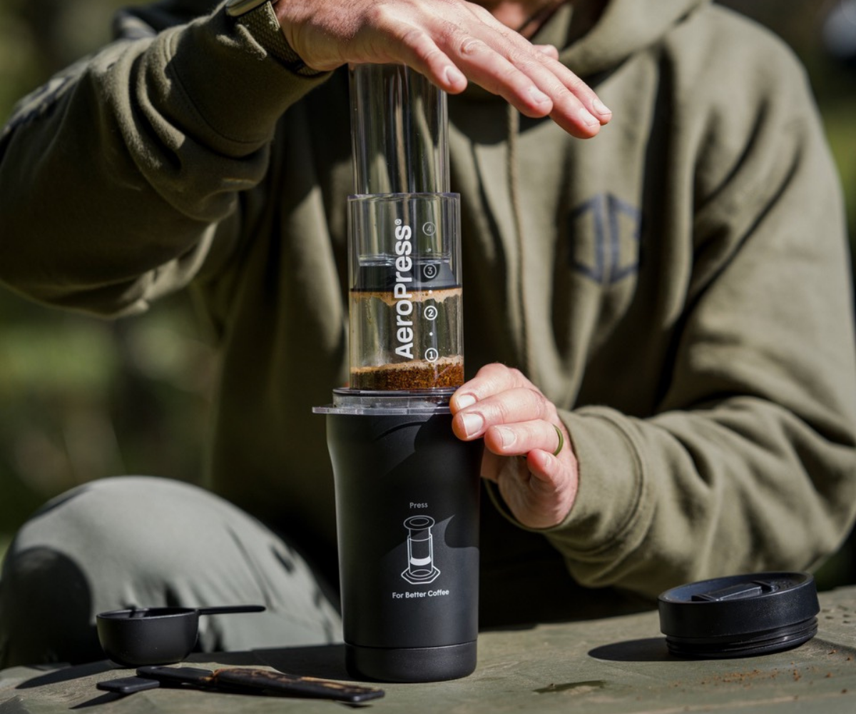 The AeroPress® Go Plus is a complete travel coffee system, engineered to brew delicious, smooth, and grit-free coffee on the go. Featuring our patented 3-in-1 brewing technology and a crystal-clear Tritan™ press, it delivers consistently bold flavor in about 2 minutes. Brew directly into the included double-wall stainless steel tumbler, sip, store, and get moving—no extra gear required.
